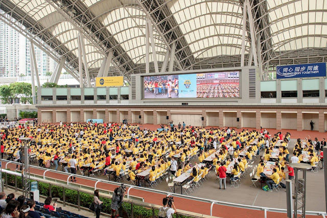 Hong Kong Jockey Club together with world famous origami artist Mr. Chan Pak Hei (Kade Chan), successfully break the Guinness World Records - Largest Origami Lesson. Over a thousand students from local schools participated to fold a plant under the lead of Mr. Kade Chan, the plant consist of three parts, flower, stem and vase. 1,073 of the participants successfully completed the folding, far beyond the old record, which is 573.